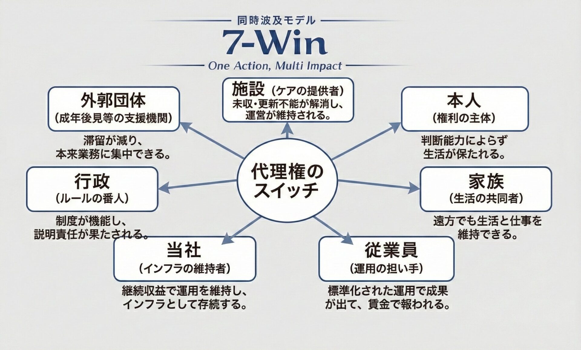 アンケージが「代理権」というスイッチを入れることで、関係7者が同時に回復します。